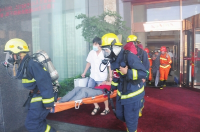 昨日,浙江省星级饭店消防安全暨新昌县旅游突发公共事件应急演练在泰坦国际大酒店举行。演练以假设泰坦国际大酒店突发火灾事故为背景,按照企业自救、消防大队主战和部门协同救援的主线,充分运用装备、人工等手段进行施救。这是对我县各部门应对重大突发事故应急能力的一次实践检验,演练活动取得了圆满成功。