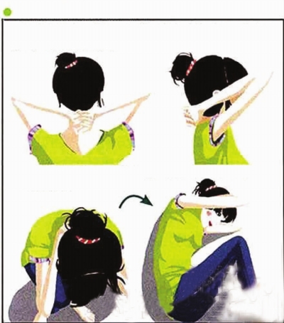 2.低下头,下巴紧贴胸前,以防颈部受伤。