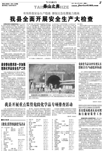据了解,为全面贯彻落实省委办公厅、省政府办公厅《关于全面开展安全生产大检查坚决遏制发生重特大事故的通知》、市政府办公室《关于组织开展安全生产大检查促进安全生产形势稳定好转的通知》以及全省安全生产电视电话会议精神,有效防范和控制各类安全生产事故发生,促进全县安全生产形势稳定好转,我县于8—9月在全县范围内全面开展以“三查、四促、两保”为主要内容的安全生产大检查。