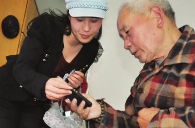 章丹丹今年27岁,现为浙江省残联残疾人康复指导中心的一位特殊教育老师。清明节期间,记者在县福利院见到了她。县社会福利院里的陈伯伯是丹丹的牵挂,这次回来,她给陈伯伯下载了一些戏曲,把这些戏曲再安装进陈伯伯的手机里。临走前,陈伯伯要求与丹丹一家人合影留念,因为陈伯伯即将离开新昌,去上海儿女身边,担心以后见面次数不多了。