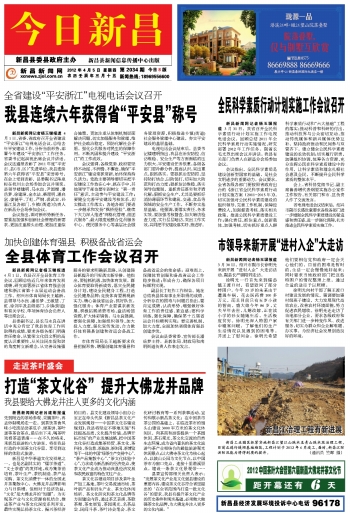 今日新昌 一版要闻 01 2012-04-051 2012年04月05日 星期四