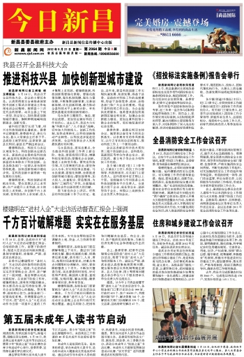 马永良作主题报告。他说,要肯定成绩,更加坚定做好科技工作的信心。过去五年,我县大力实施“科教兴县”、“人才强县”战略,切实加大科技投入,创新工作机制,加快成果转化,以科技创新推动产业转型,以科技进步促进经济发展,全县科技事业步入发展最快最好的时期。