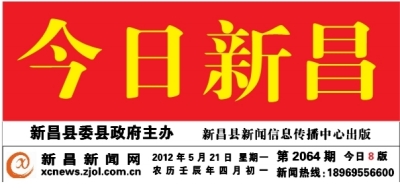 2012年5月21日 星期一 农历壬辰年四月初一 新昌县新闻信息传播中心出版 第2064期 今日8版 新闻热线:18969556600