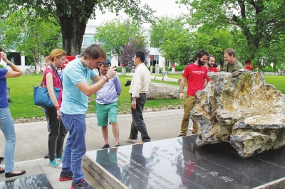 在大佛寺,江南第一大佛、栖光万佛宝塔、露天弥勒、亚洲第一卧佛带给他们一次又一次的心灵震撼,他们纷纷举起手中的相机、DV,用镜头捕捉美丽瞬间。来自美国的柯伟业先生表示,大佛寺寺庙古色古香,石窟佛像精美绝伦,佛教氛围浓郁无比,真是一个修身养性的好地方。