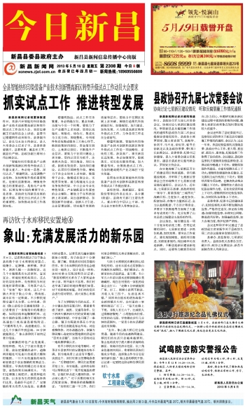今日新昌 一版要闻 01 2013-05-101 2013年05月10日 星期五