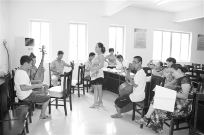 城南乡有个农民越剧社,现有20多名成员;该社经常自编自导节目并在当地演出,深受农民群众的喜爱。图为越剧社成员正在接受培训。 (通讯员 丁灿娟 摄)
