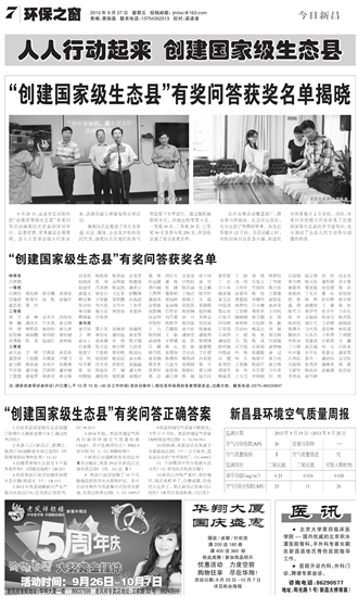 “创建国家级生态县”有奖问答获奖名单揭晓
