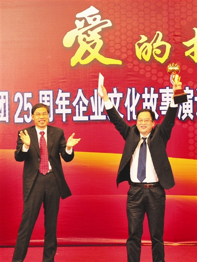 庆典现场,董事长胡柏藩先生为70余名20年以上荣誉员工颁奖,感谢他们为集团发展做出的努力和贡献。演讲赛选手们通过一个个生动形象的真实故事,再现了新和成集团从一个名不见经传的废酒精溶剂回收小作坊,发展成涉及精细化工、医药、教育、房产、投资、机械6大领域的大型集团的发展历程,展现了新和成人爱国家、爱企业、爱岗位、爱员工、爱同事,执着奉献,勇于竞争,追求卓越的精神,体现了新和成独特的企业文化。酒会上,集团董事、股份公司总裁胡柏剡先生对员工及社会各界对新和成的支持表示感谢,并鼓励新和成人坚持“创富、均衡、永续”的经营责任观,弘扬“求实、求新、求质、求效”精神,朝着“中国新和成、世界新和成”的目标不断迈进,续写新辉煌!