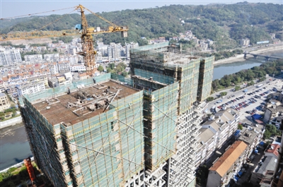 新昌新闻网记者石磊摄影报道 我县十大服务业项目世贸广场成为山城新“地标”,高度99.9米的C、D两幢大楼已经结顶,A、B两幢也即将结顶,地下两层已经开始进入管线布装阶段,项目招商工作正抓紧推进中,已完成年度计划的104%,该项目有望成为我县十大服务业项目中率先完工之项目。