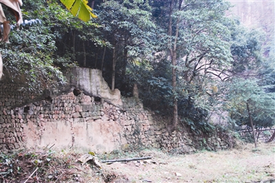 东岇山,是东晋入剡名士高僧栖游之地。岇,非峁,易误写误读。东岇山主峰水帘尖,海拔656米,孤峰峭拔,四面均可仰望;山下有水帘洞。东晋高僧竺道潜隐居水帘洞侧三十余年,立寺行道,其高足竺法友竺法蕴竺法济等均系一代高僧,星聚东岇,使之成为当时般若学六家七宗研习中心之一。图为竺道潜隐居处遗址。 (文/图:梁新阳)
