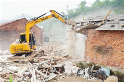 新昌新闻网记者俞晓委 通讯员丁灿娟摄影报道 昨日上午,城南乡组织全体工作人员对该乡南复线边花地头、前进大坞猪场等6处违章建筑进行集中拆除,共拆除面积8600余平方米。