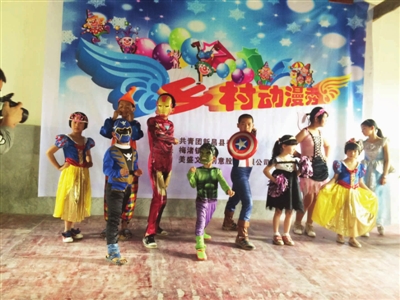 美丽的白雪公主、勇敢的蜘蛛侠、威武的美国队长……农村的孩子们走上舞台,在动漫秀中展示活泼的一面。近日,团县委联合梅渚镇团委、美盛文化公司团委,在梅渚镇红庄村上演了一场“乡村动漫秀”,让农村的孩子提前过了一个快乐的“六一”节。 (通讯员 张钰 摄)
