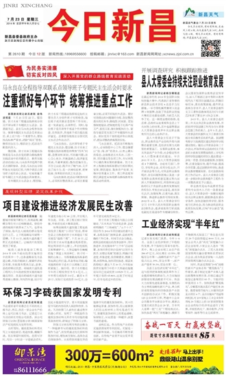 今日新昌 一版要闻 01 2014-07-231 2014年07月23日 星期三