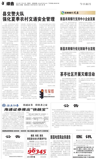 今日新昌 综合 04 2014-07-231 2014年07月23日 星期三