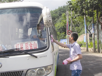 近日来,持续高温天气给各岗位一线员工的工作带来了不利影响。7月23日上午,县汽运公司组织管理人员深入公交始发站、出租车停靠点、客运西站、新镜线途中、客运东站、修理厂、客运中心等地开展送清凉活动,为广大一线驾驶员送去毛巾、矿泉水等,并向他们宣传夏季行车注意事项。 (通讯员 俞浩锋 摄)