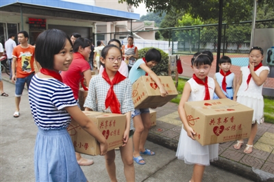 新昌新闻网记者黄婉晶摄影报道 昨日,两辆披红挂彩的货车满载着爱心和希望,启程前往西藏那曲地区比如县,车上满载着近万名孩子捐出的15000多本爱心图书。据悉,此次“援藏爱心图书室”活动由绍兴日报社驻新昌记者站、绍兴文明网和西藏比如县教体局共同倡议发起,县关工委还专门捐出1万元用于爱心图书室的建设。