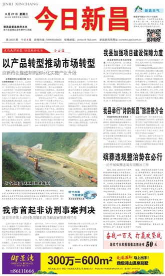 今日新昌 一版要闻 01 2014-08-271 2014年08月27日 星期三