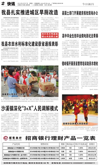 今日新昌 快讯 02 2014-08-271 2014年08月27日 星期三