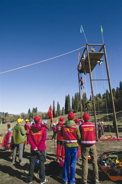 新昌新闻网见习记者俞佶婷报道 10月12日, 2014“肯拓普”中国山地救援交流赛在新疆库尔德宁举行,来自全国18个政府和民间救援团体参加比赛。我县红十字户外救援队共参加了三个项目的竞争,其中重物提升和SRT接力单项技能均获第一,综合成绩排名第二。