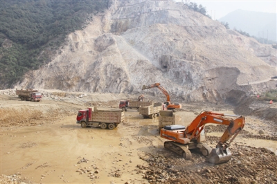 新昌新闻网记者王娟敏摄影报道 昨日,在钦寸水库大坝建设工地,大坝基坑正全面开挖。大坝基坑长155米,宽约40米,坑底高程为42米,目前工作面已挖至46米高程,还需下挖4米。