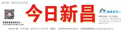 2014年11月19日 星期三 农历甲午年闰九月廿七 第2691期 今日8版 新昌县气象台11月19日发布 今天多云,早晨局部有雾,偏北风2到3级,白天最高气温17℃,森林火险3级。明天多云,早晨最低气温7℃。