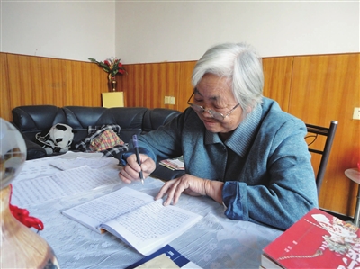 大妈叫徐朝燕,今年70岁,生活甜蜜的大妈精神矍铄,除了头发斑白外,耳聪目明,思路敏捷,谈吐清楚,就连看报纸上的小字也不必戴老花眼镜。在徐朝燕的书房里,书柜上放着满满的书,涉及的类别也很广泛,历史、地理、小说、名人传记、游记……此外,徐大妈还自费订了多份报纸,每天“追踪”国内外新闻。“看书真的蛮有意思,写书的人真的太伟大了,写的文章把我们心里的话都说出来了。”提起读书,徐朝燕的兴致特别高。尽管因为家境困难没能入读高中,但是小学、初中一直成绩优异的她始终没放下自己的学习梦,操持家务之余总要读读书、看看报、做做笔记,这也成为她最大的乐趣和爱好。