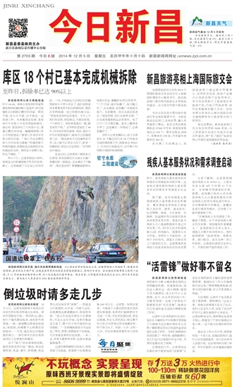今日新昌 一版要闻 01 2014-12-051 2014年12月05日 星期五