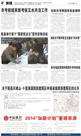 今日新昌 快讯 02 2014-12-051 2014年12月05日 星期五