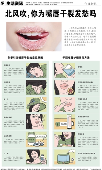 嘴唇在没有保护的情况下长久处于寒风中就很容易开裂。长时间处于干燥环境下也可能会导致嘴唇干裂。如果你所处的生活环境条件比较恶劣,你应该对你的嘴唇进行额外的防护。