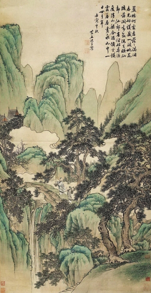沈宗骞传世之作《天台采药图》,为立轴设色纸本,款识:蓝桥何处看茫茫,满洞春光好护藏。一被桃花随落涧,却教流去赚仙郎。仙郎有伴好寻源,度得山梁合遇仙。云岢霞帘春昼永,山中一日世千年。壬寅中秋芥舟沈宗骞。钤印:沈宗骞印(白文)、芥舟居士(朱文)。图见中国嘉德2006年四季拍卖会中国书画专场。此图以汉代剡人刘阮入天姥山采药遇仙故事为题材,表现仙境桃源,山水清妙,人物传神,不失为沈氏传世神品。