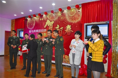 2月13日,县消防大队与白云山庄举办“骏马奔腾辞旧岁,三羊开泰贺新春”联欢晚会,拉近军民距离,密切军民关系。 (通讯员 吴颖峰 摄)