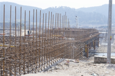 青山大桥建设工程项目于4月24日正式动工建设,由于前段时间一直处于阴雨天气,目前正在加紧赶工中。据悉,该项目正在进行上部结构支架的搭设,模板铺装,接下来将进行桥体的预压,钢筋的绑扎等工作。