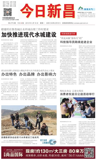 今日新昌 一版要闻 01 2015-03-161 2015年03月16日 星期一