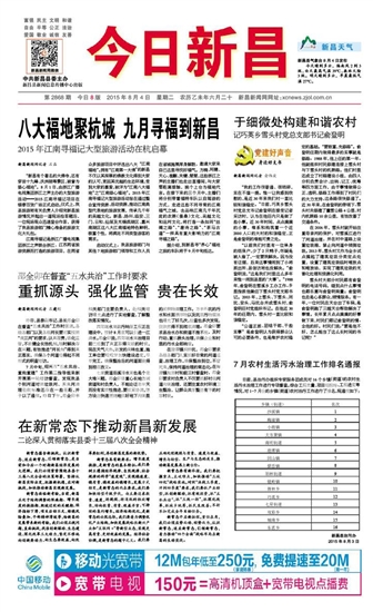 今日新昌 一版要闻 01 2015-08-041 2015年08月04日 星期二