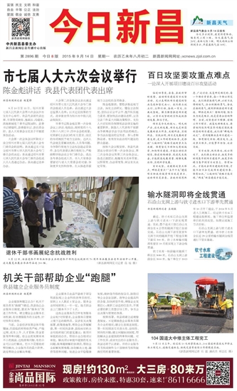 今日新昌 一版要闻 01 2015-09-141 2015年09月14日 星期一