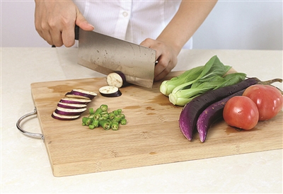 普通的家庭厨房一般空间不是很大,为了省事,很多家庭就生食和熟食都使用同一把菜刀和同一块砧板。作为食物的直接接触者菜刀和砧板,在切割生食时,食物中的细菌等会残留其上。若此后又用于切割熟食,细菌则会以菜刀和砧板为媒介直接污染熟食。因此,家中应备两把菜刀、两块砧板,并分开使用:一块用于切割生食,一块用于切割熟食。每次用菜刀切熟食前应煮一会,使用砧板前可用开水烫一下,以杀灭残留其上的细菌。