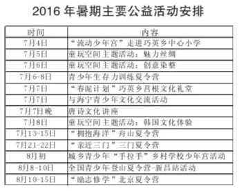 今年暑期,县青少年活动中心开设有书画类、音舞类、体育科技类等特色兴趣活动项目,有中韩夏令营、北京励志修学营、少年精英夏令营、生存力训练营、“拥抱大海”舟山夏令营等激情夏令营活动,更有送活动进农村小学、进文化礼堂,城乡青少年手拉手等公益活动,这些活动为青少年朋友提供了丰富的暑期活动大餐。该中心还将承办全国青少年登山夏令营新昌站活动,这是我县首次承办全国夏令营,也是浙江省唯一举办地。