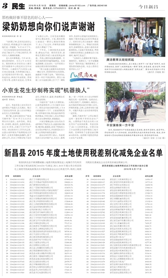 新昌县2015年度土地使用税 差别化减免企业名单
