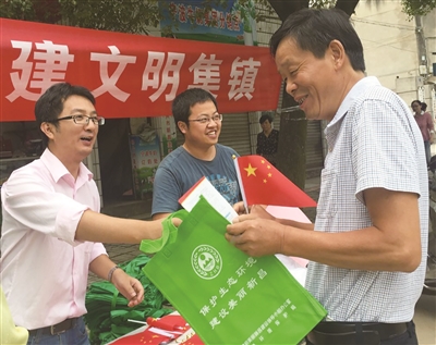 为进一步推进省级卫生乡镇、市级文明集镇创建工作,昨日,澄潭镇开展了“迎国庆,创建文明集镇”宣传活动,于集镇主要街道设置宣传摊位,发放300余份文明集镇创建倡议书、环保袋和手持式国旗,受到群众欢迎。 (新昌新闻网记者 程哲 通讯员 章景 摄)
