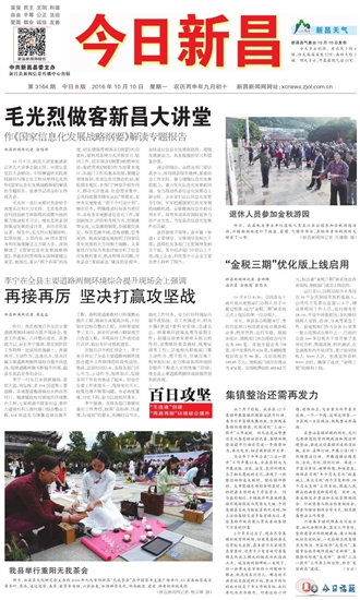 今日新昌 一版要闻 01 2016-10-101 2016年10月10日 星期一