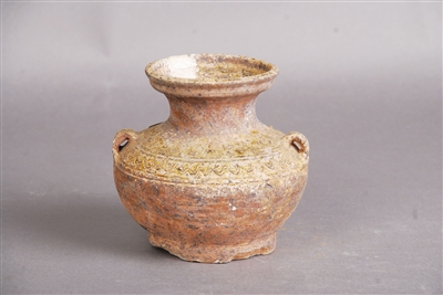 陶器是汉代最主要的器物,继承商周器物形制演变而来。多用于储藏物品或作为随葬品,在全国各地均有出土。汉代是我国陶器生产突飞猛进的时期,在战国及秦代陶器生产的基础上,陶器生产的规模、种类及生产技术等方面均有了很大的提高,并新出现了低温铅釉陶等新的陶器种类。汉代陶器无论是泥质陶还是夹砂陶,无论是饮食器具还是储藏类用具,都比较精细,器形规整、实用,装饰美观。汉代日常用陶大多数是灰陶,在烧窑后期,还原气氛控制比较好,灰色浅淡而均匀,质地坚实耐用,此外还有红陶和黑陶。