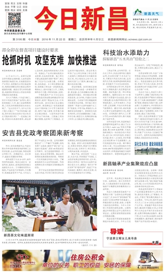 今日新昌 一版要闻 01 2016-11-221 2016年11月22日 星期二