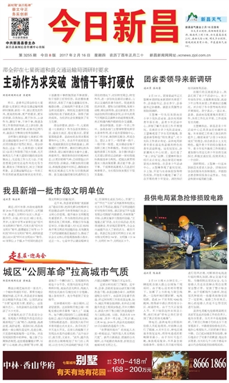 今日新昌 一版要闻 01 2017-02-161 2017年02月16日 星期四