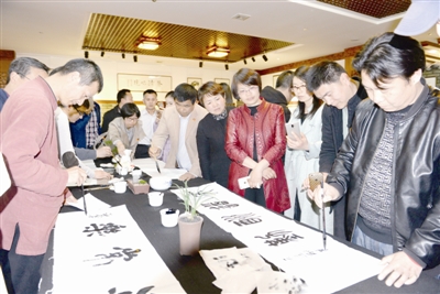 4月12日晚,新昌微印社在中国茶市展览馆举行成立三周年雅集活动,广大篆刻、书法爱好者欢聚一堂,相互切磋技艺,教学相长,并表演了歌舞等节目。 (记者 杨玉墀 摄)