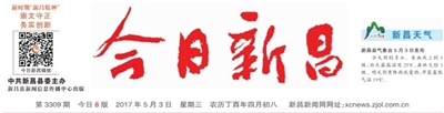 第3309期 今日8版 2017年5月3日 星期三 农历丁酉年四月初八 新昌新闻网网址:xcnews.zjol.com.cn