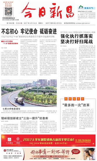 今日新昌 一版要闻 01 2017-08-161 2017年08月16日 星期三