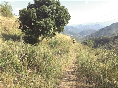 下午1点多,我们到达峧头(三岔口),左手边是一大片风光秀丽的大草甸,古道右边有一个已经破败的小房子。“这里原先是大家的田地,后来荒废了,就成了草甸。”村民郑林法正在附近割草,他告诉记者,破败的小房子边原先是茶亭,一共有三间房子,他的奶奶、养父都曾在里面烧茶,免费供应来往的行人。