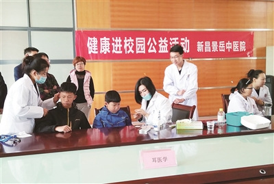 日前,景岳中医院“健康进校园”公益活动来到实验小学,医务人员举行健康知识讲座及咽喉炎、鼻炎等诊治,让师生体验了中医学的独特疗法。 (通讯员 俞伟珍 摄)