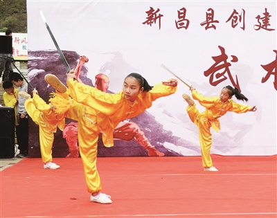 11月19日下午,我县创建“省武术之乡”武术汇演在江滨公园举行,来自全县各教学点的200多名武术爱好者,分别表演了《叠罗汉》《武术散打》《段位制套路》等精彩武术,吸引众多市民观看。
