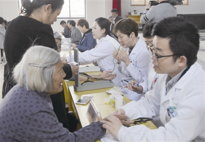 3月14日,由县委宣传部牵头组织的“阳光文化进礼堂”活动走进大市聚镇曹家村文化礼堂,来自司法、农业、科协、人民医院等单位组成的服务团,为当地村民提供了法律法规咨询和援助、种植技术咨询指导、科普教育及健康体检等服务。图为县人民医院医生给村民做内科检查。